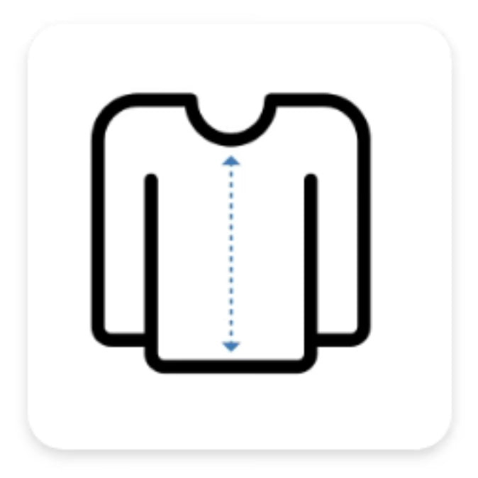 Mælt frá klofsaumi að fal eða frá mittislínu að fal á kjólum og pilsum.