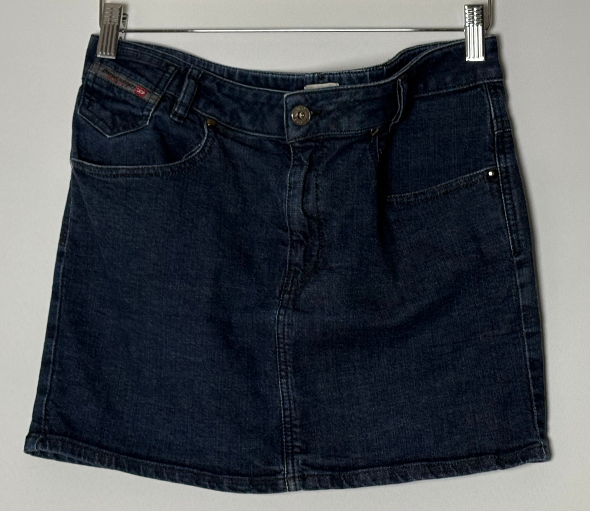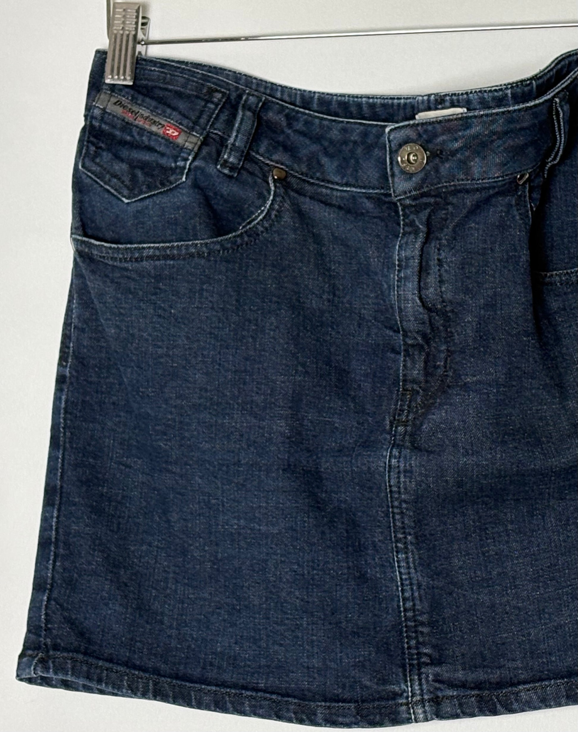 Y2K míní pils frá Diesel. Pilsið er í miðlungsbláum þvotti með tölufestingu og rennilás og tveim vösum bæði að framan og aftan. Pilsið teygist vel.