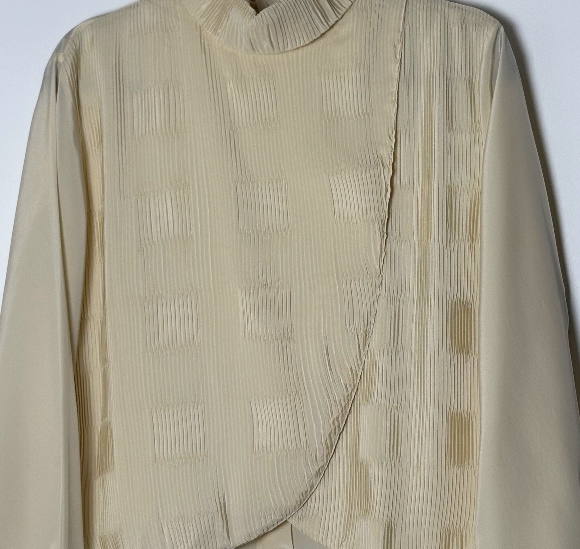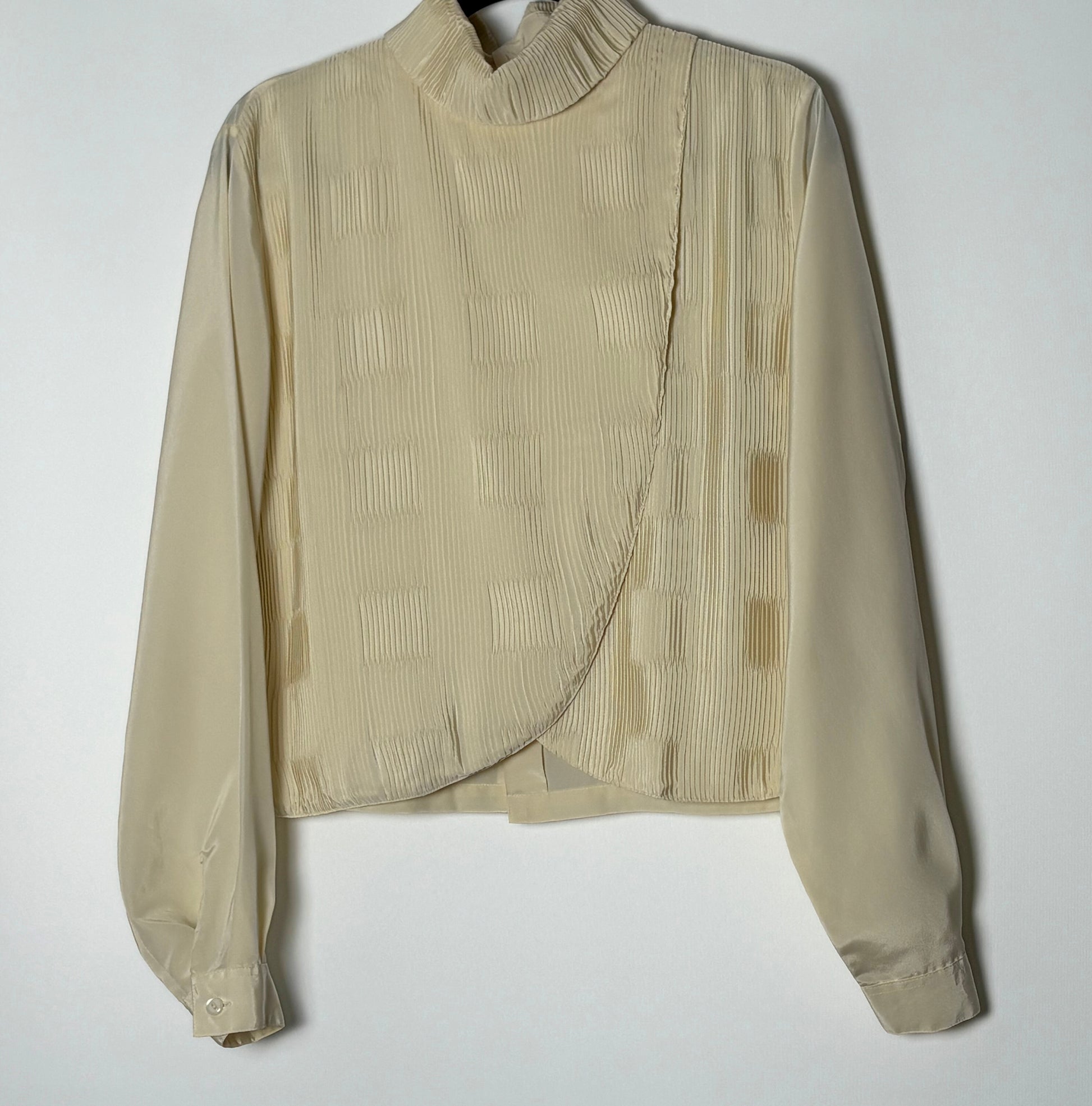 Einstaklega falleg vintage blússa. Blússan er síðerma með rúllukraga og tölum aftan á.