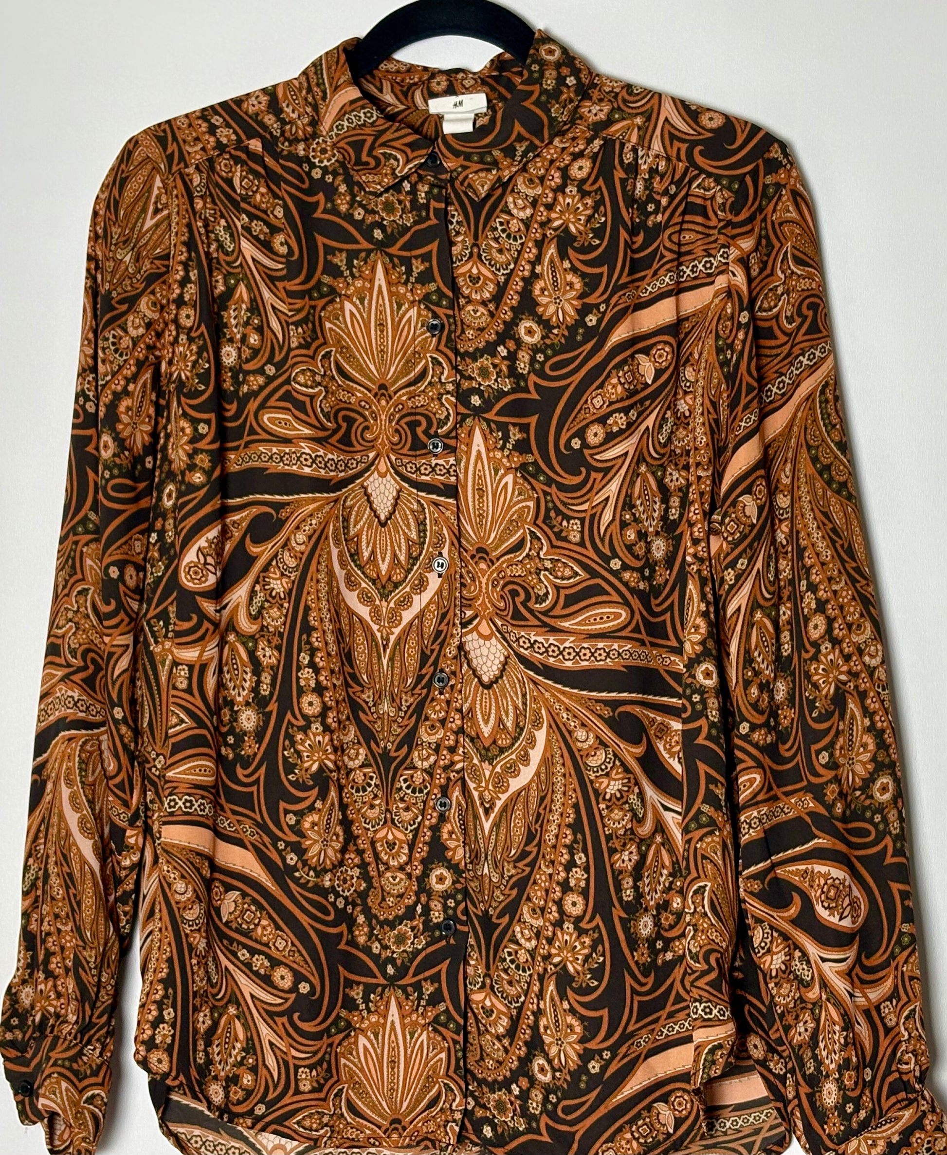 Limited edition skyrta frá samstarfi H&M við tískuhús Richard Allan. Munstrið er innblásið af 60s hönnunum Richard Allan, sem varð þekktur fyrir nýstárlega hönnun og djörfum munstrum á silki hálsklútum.
