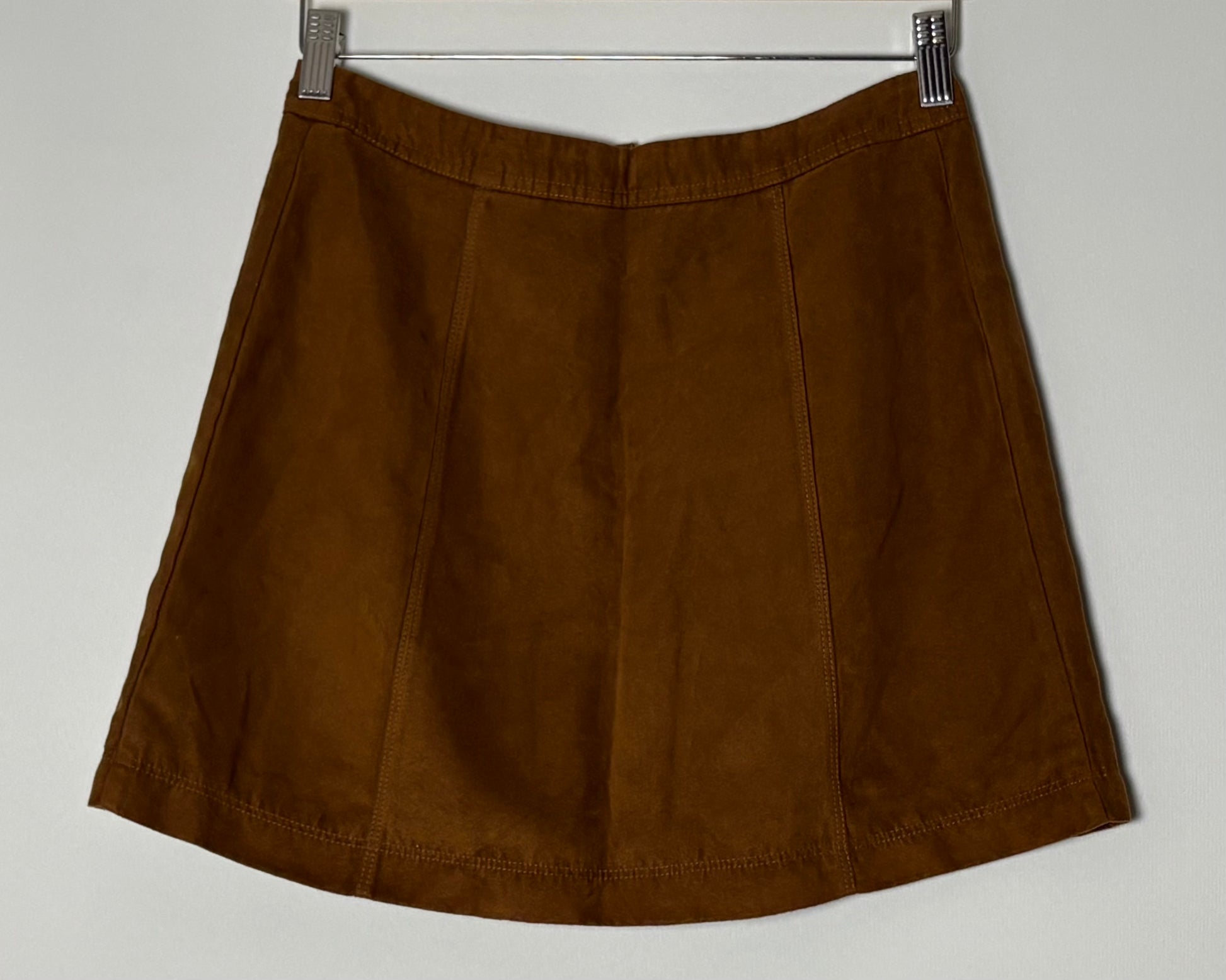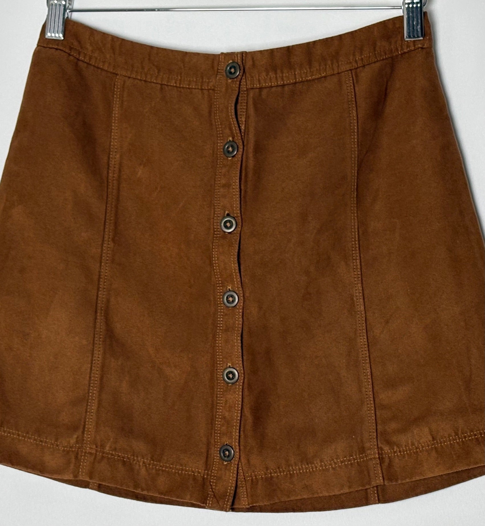 Retro míní pils frá merkinu Hollister. Pilsið er úr mjúku efni með rússkinsáferð og er með tölum að framan sem hægt er að hneppa alla leið. Hátt mitti og sniðið A-line.