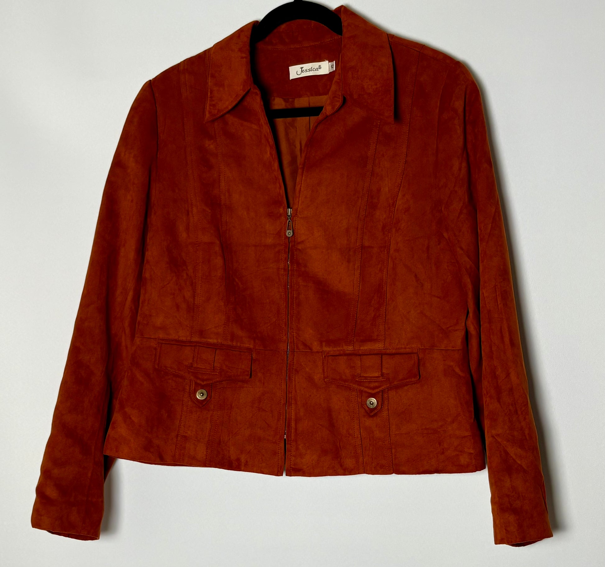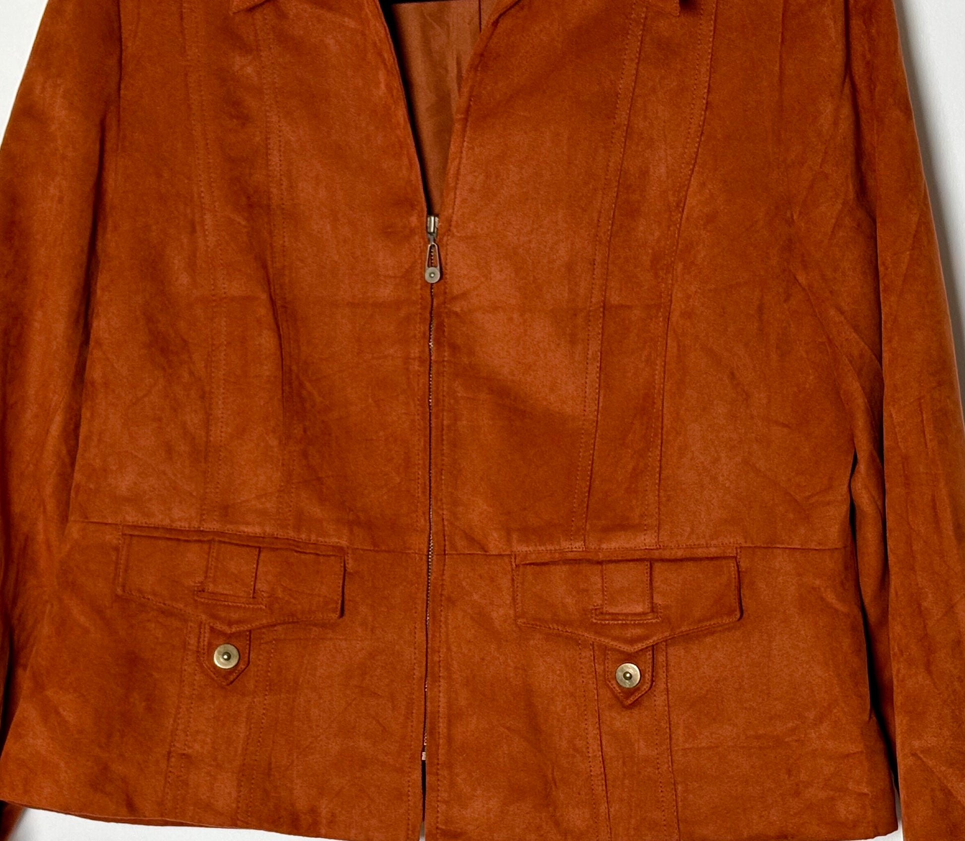 Vintage 90s/y2k jakki með rússkinns áferð. Jakkinn er renndur að framan og með vasa.