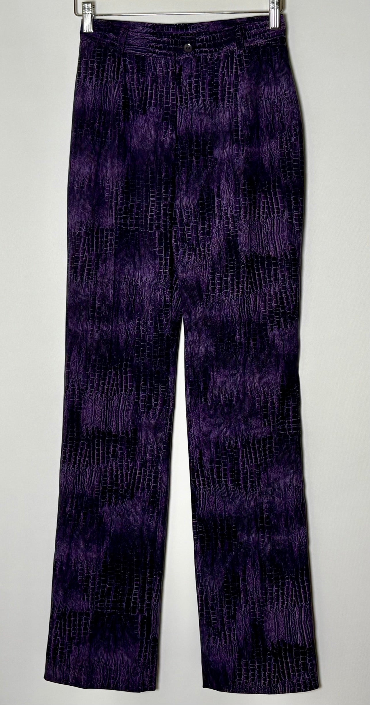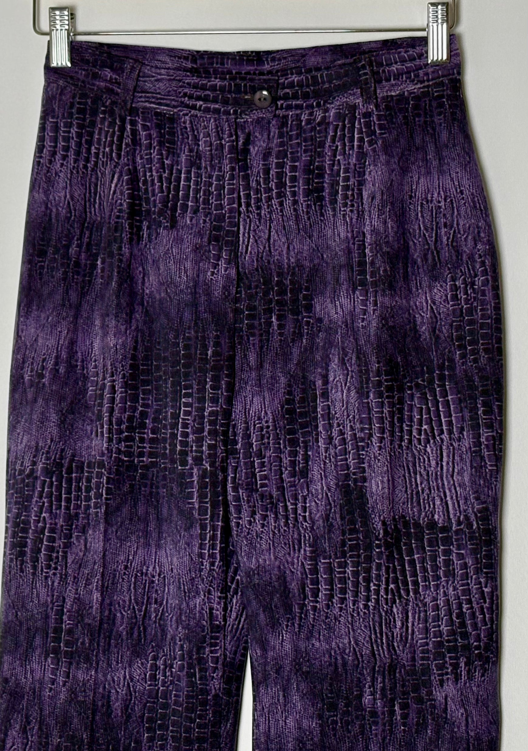 Vintage buxur í fallegum fjólubláum lit. Buxurnar eru háar í mittið og með Slim sniði.