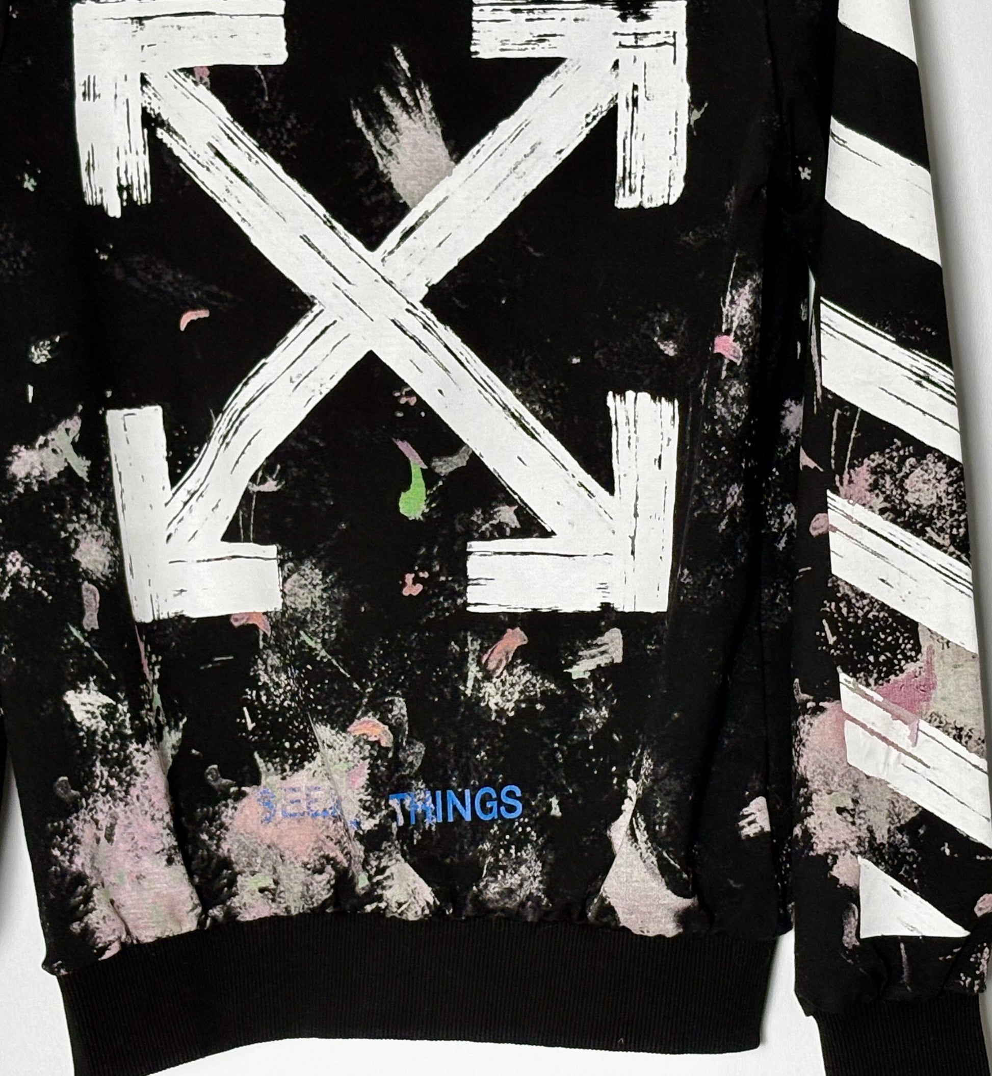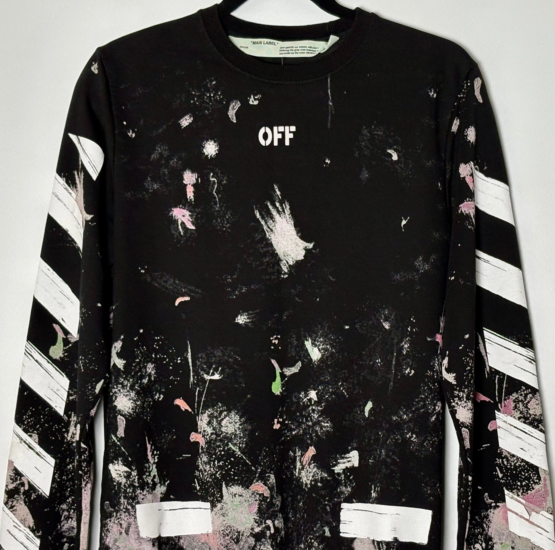 Unisex peysa frá hátískuhúsinu Off White. Peysan er úr jersey efni og teygist ágætlega.