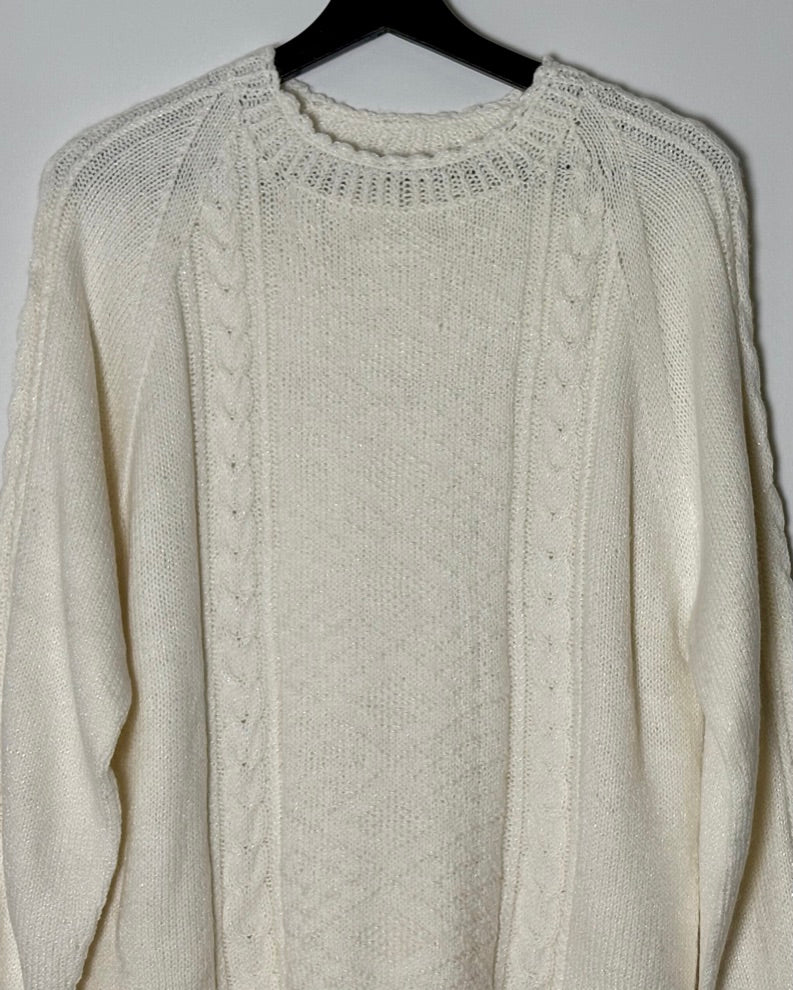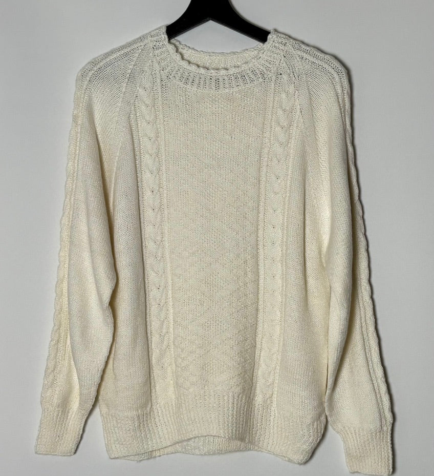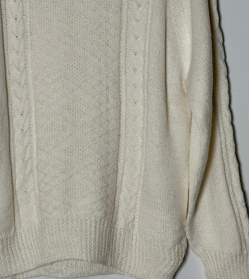 Vintage peysa með kaðlamunstri og mettalic þráðum saumuðum í.