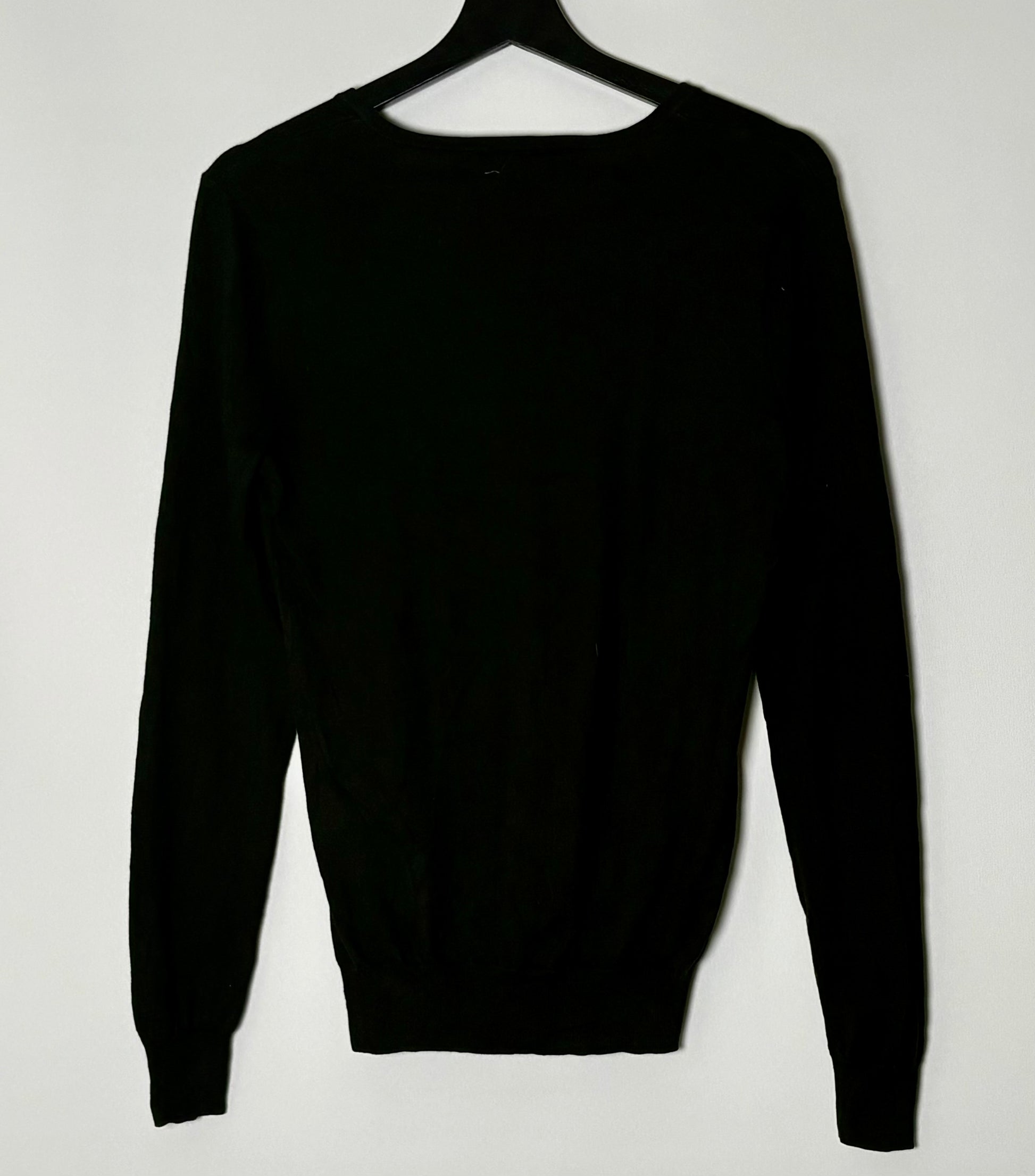 Vintage Ralph Lauren Sport peysa. Peysan er svört með rauðu Polo merki og v-hálsmáli.