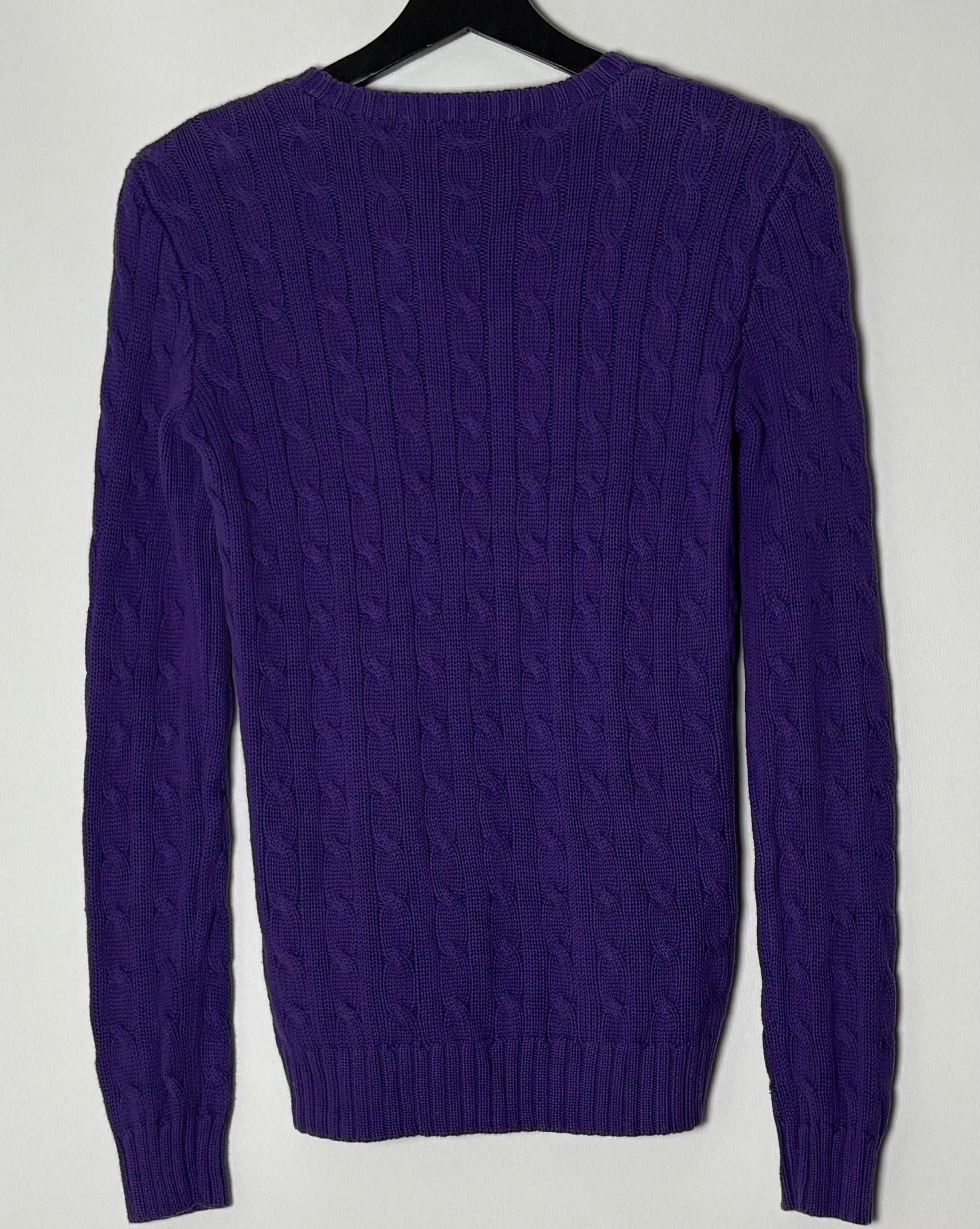 Vintage Ralph Lauren Sport peysa. Peysan er með gult Polo merki, með sígildu kaðlamunstri og í klassísku sniði.