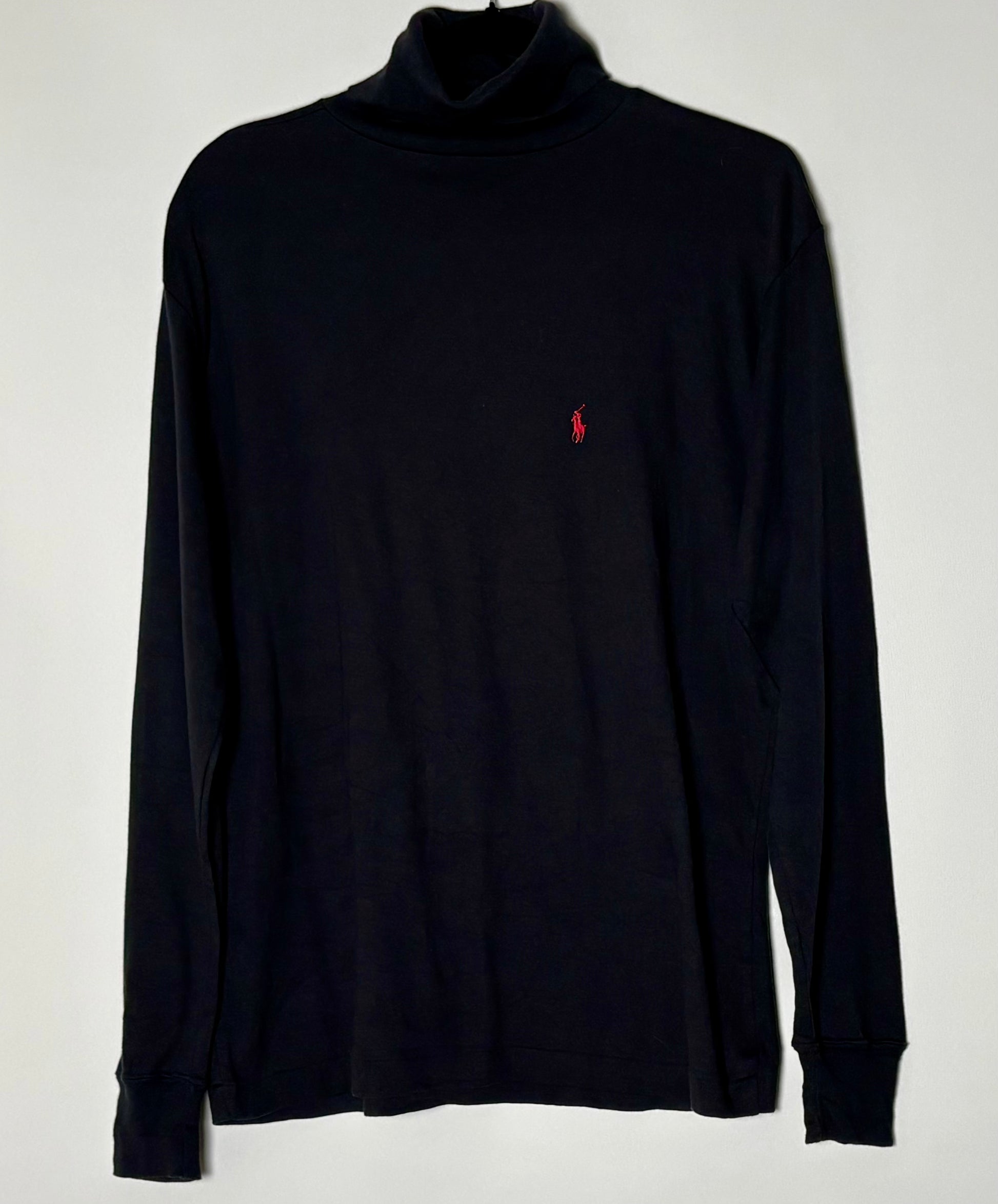 Vintage Ralph Lauren rúllukragabolur. Bolurinn er dökkblár með rauðu Polo merki.