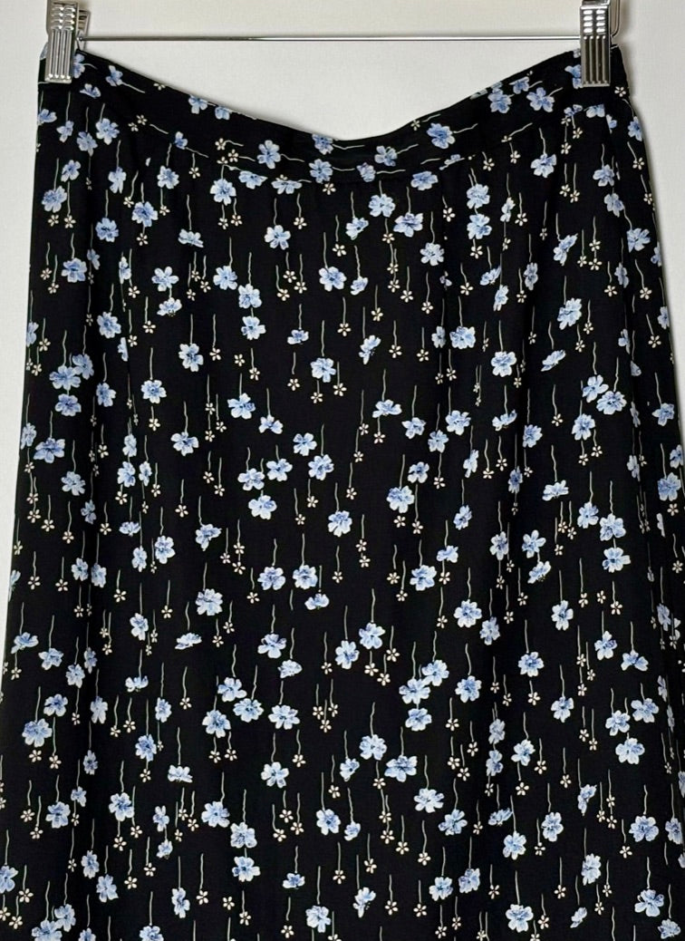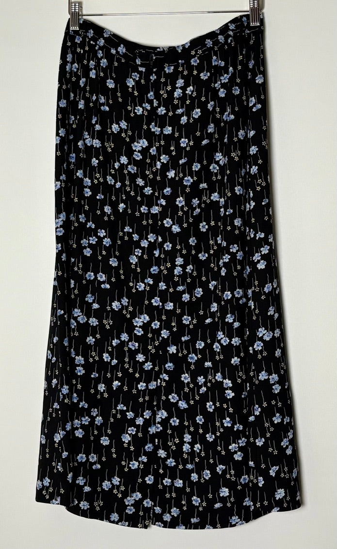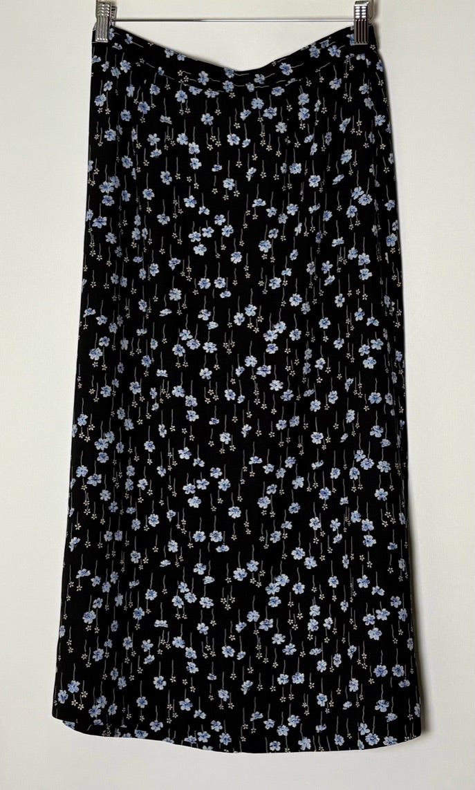 Vintage pils með sætu blómamunstri. Pilsið nær niður fyrir hné, er með teygju á hliðunum og rennilásafestingu aftan á.