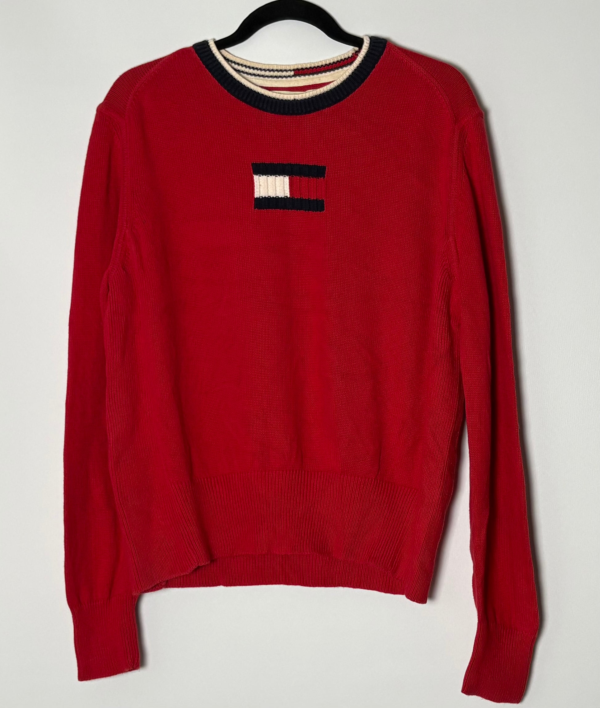 Vintage Y2K Tommy Hilfiger peysa. Peysan er í sígildum Tommy litum með TH logo framan á. Framleitt í Japan.