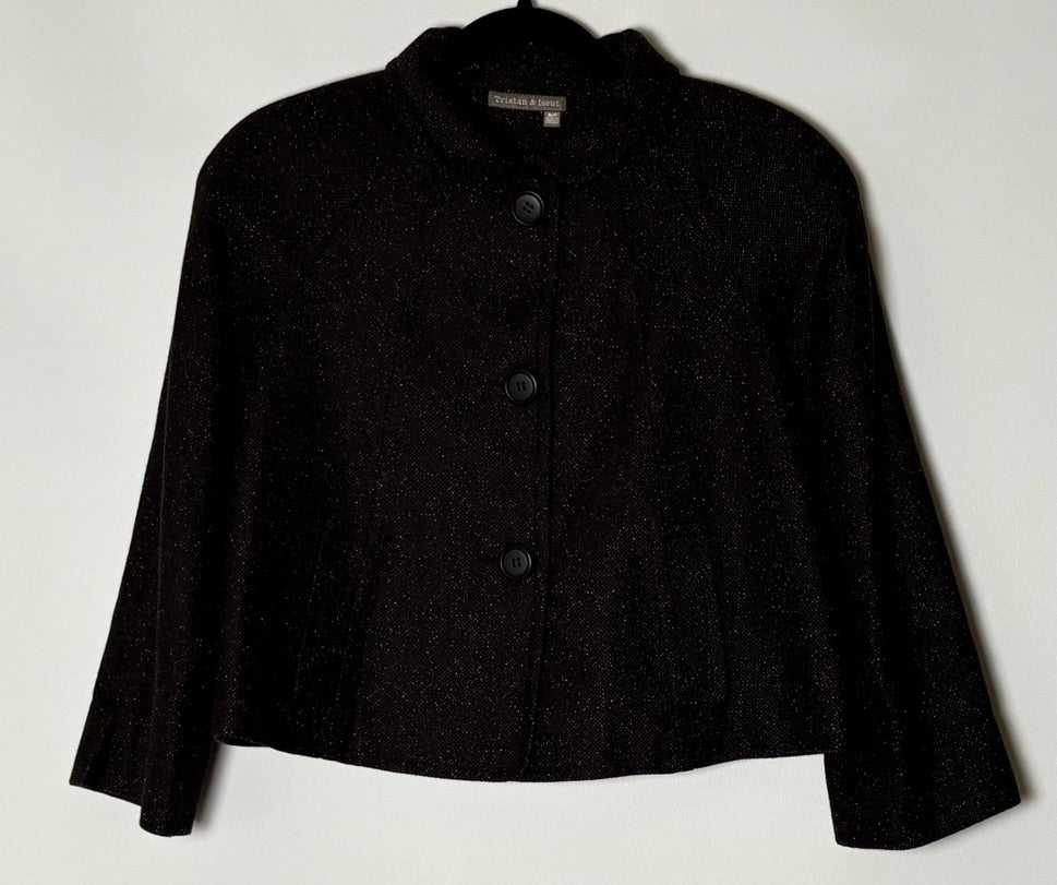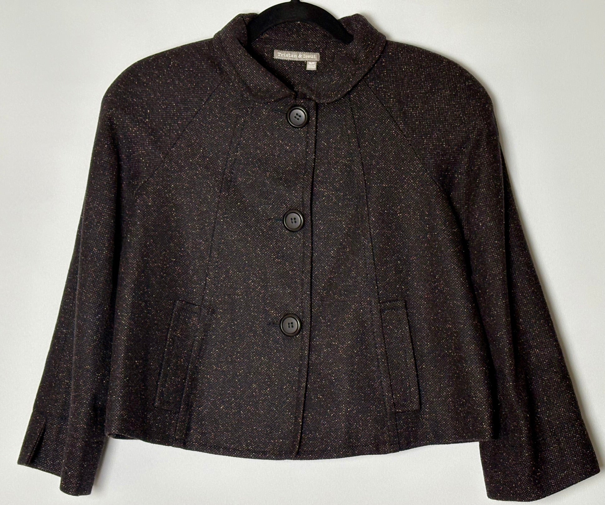 Æðislegur stuttur retro jakki. Jakkinn er með kraga og hnepptur með tölum að framan. Vasarnir eru skrautvasar.