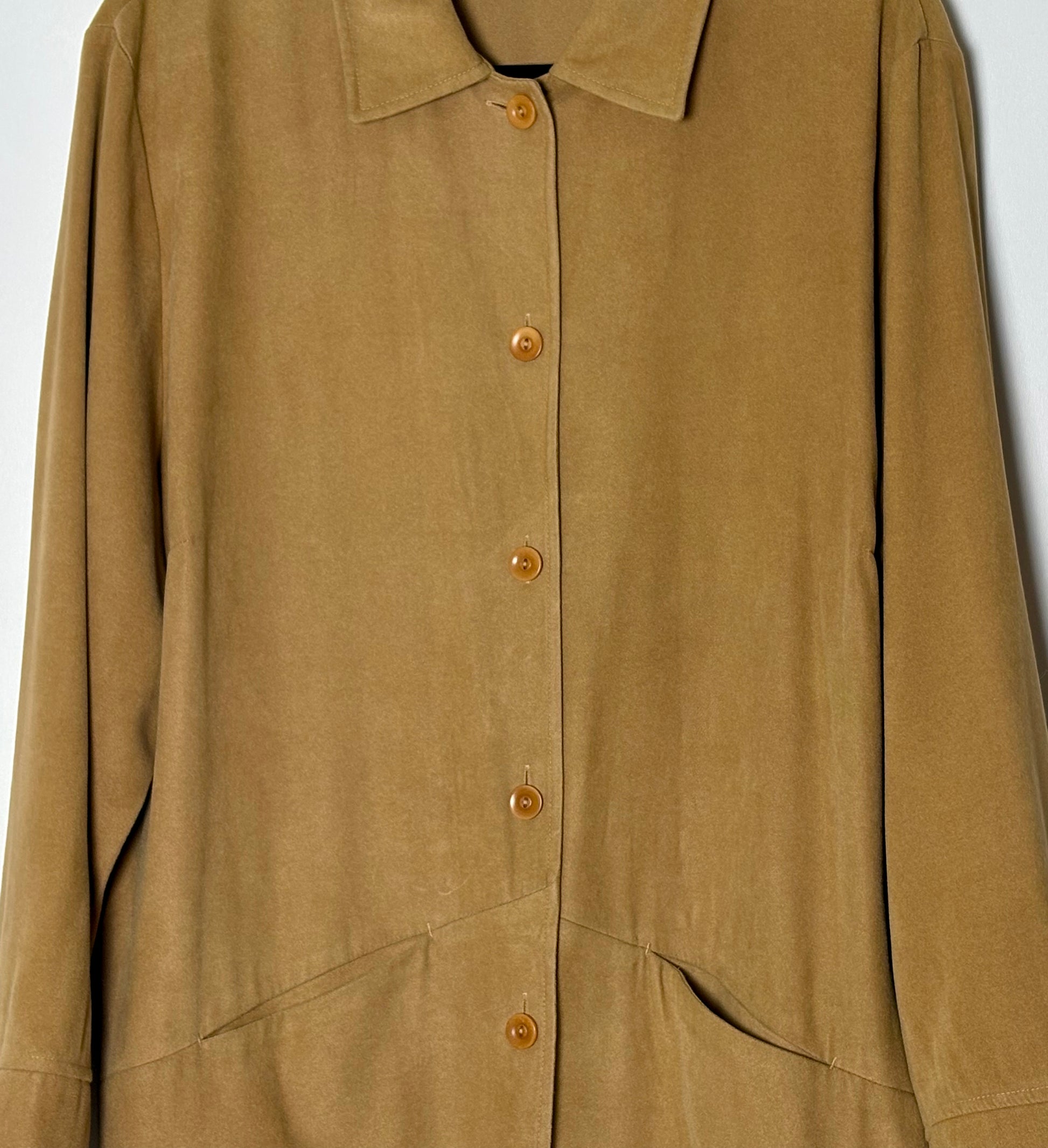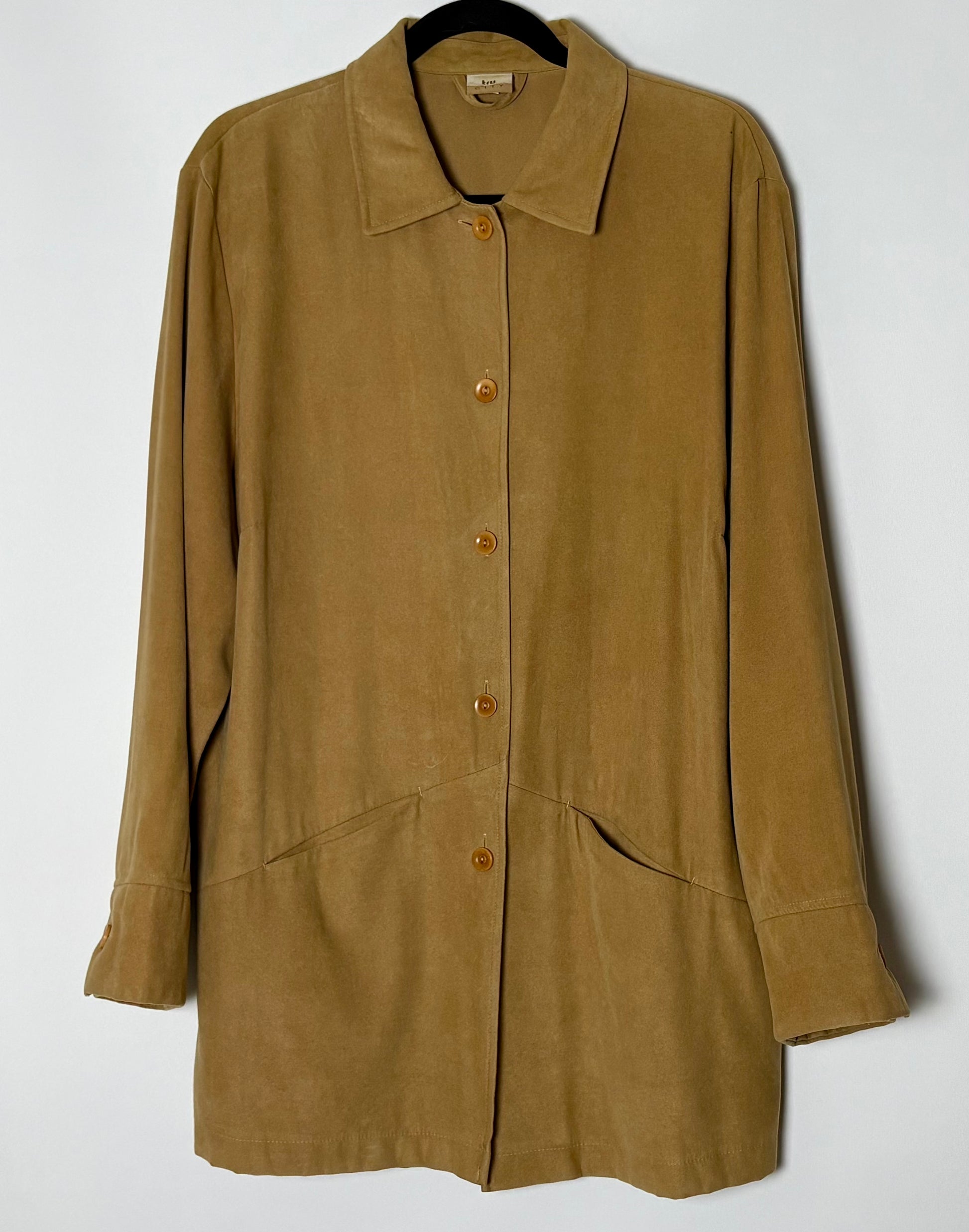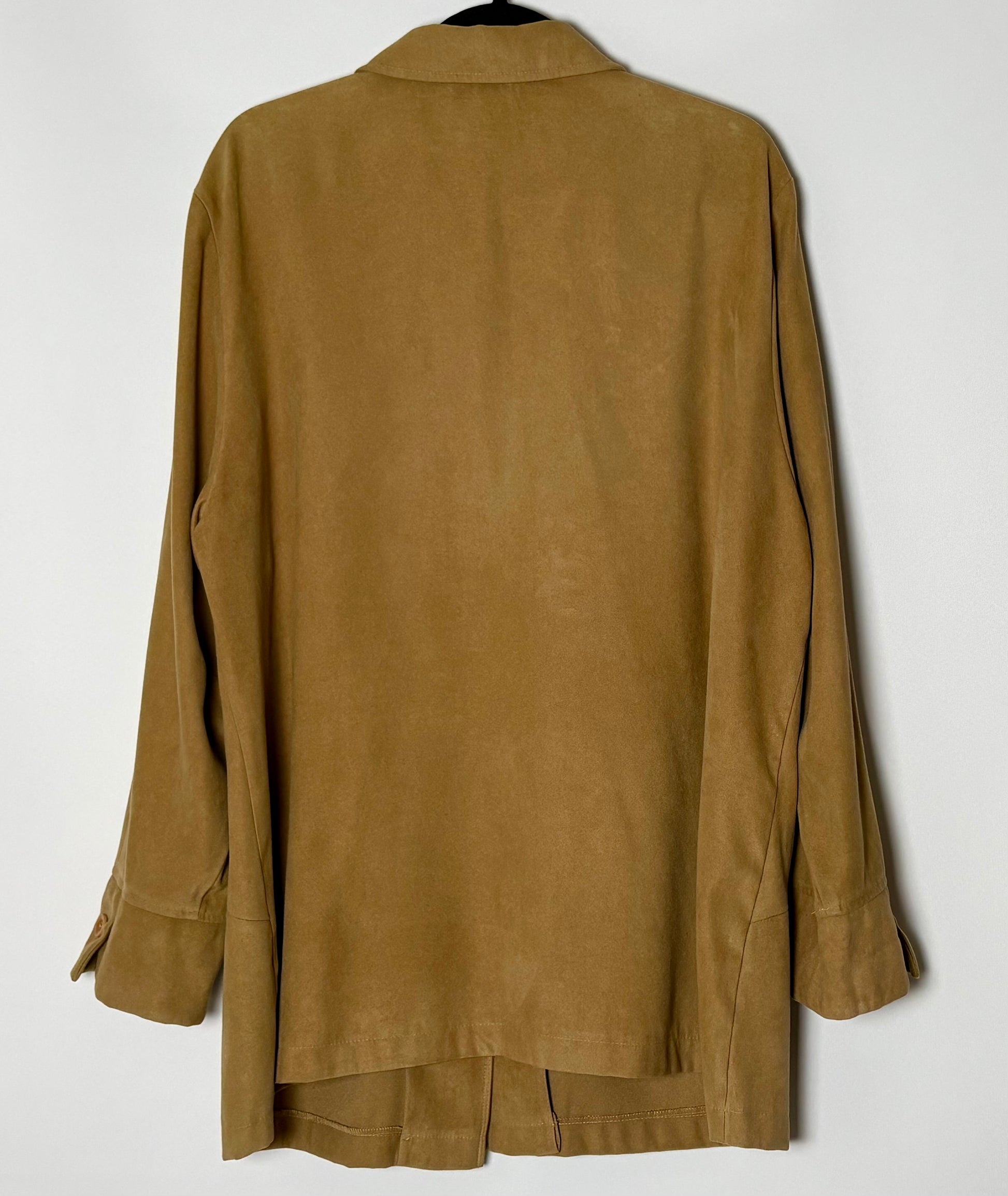 Vintage skyrtujakki með rússkinnsáferð. Jakkinn er með tölum og tveim værum að framan og úr einstaklega mjúku og þægilegu efni. Sniðið er í yfirstærð.