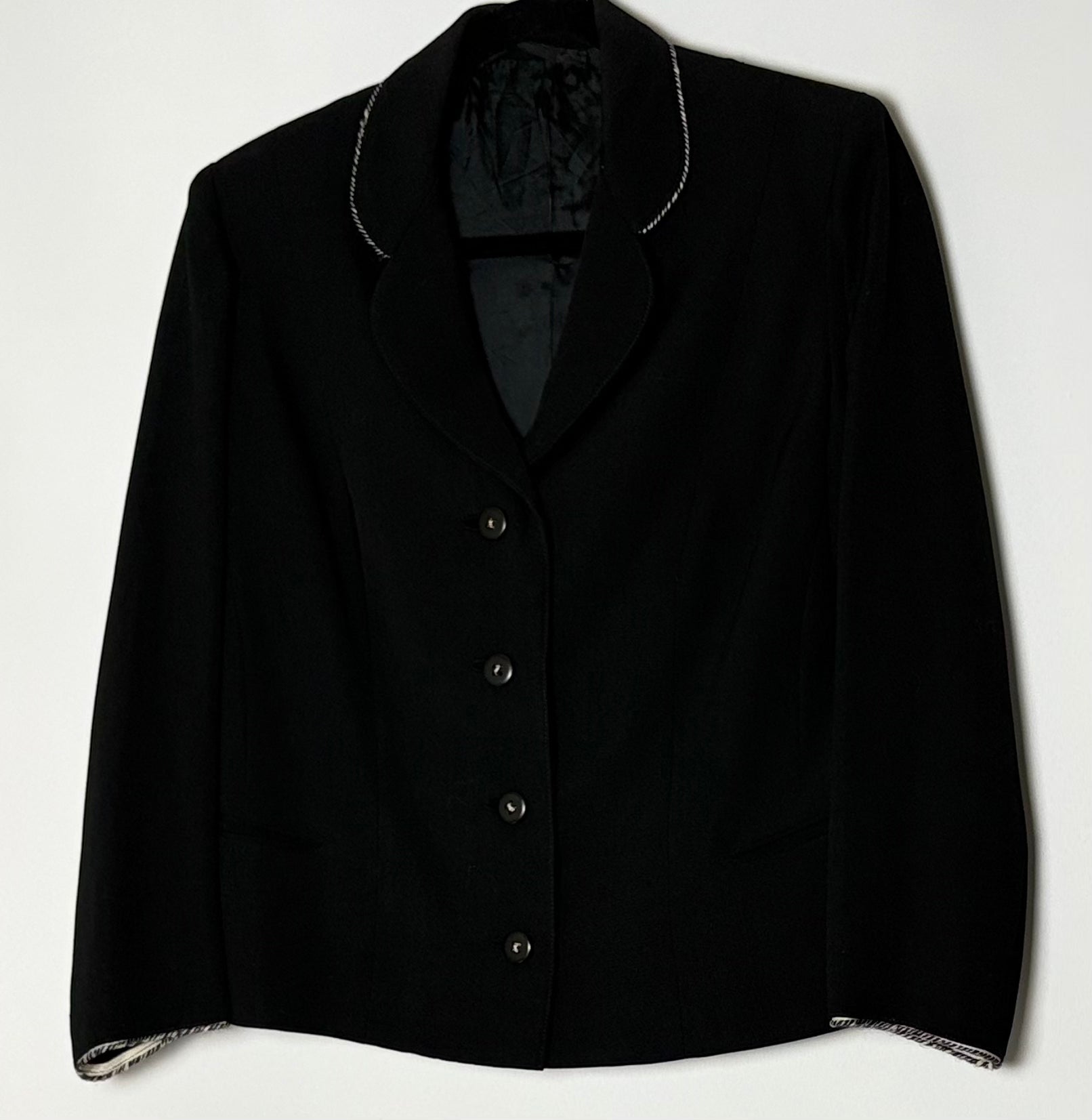 Svartur vintage blazer. Fjórar tölur að framan, blazerinn nær ca niður að mjaðmabeini.