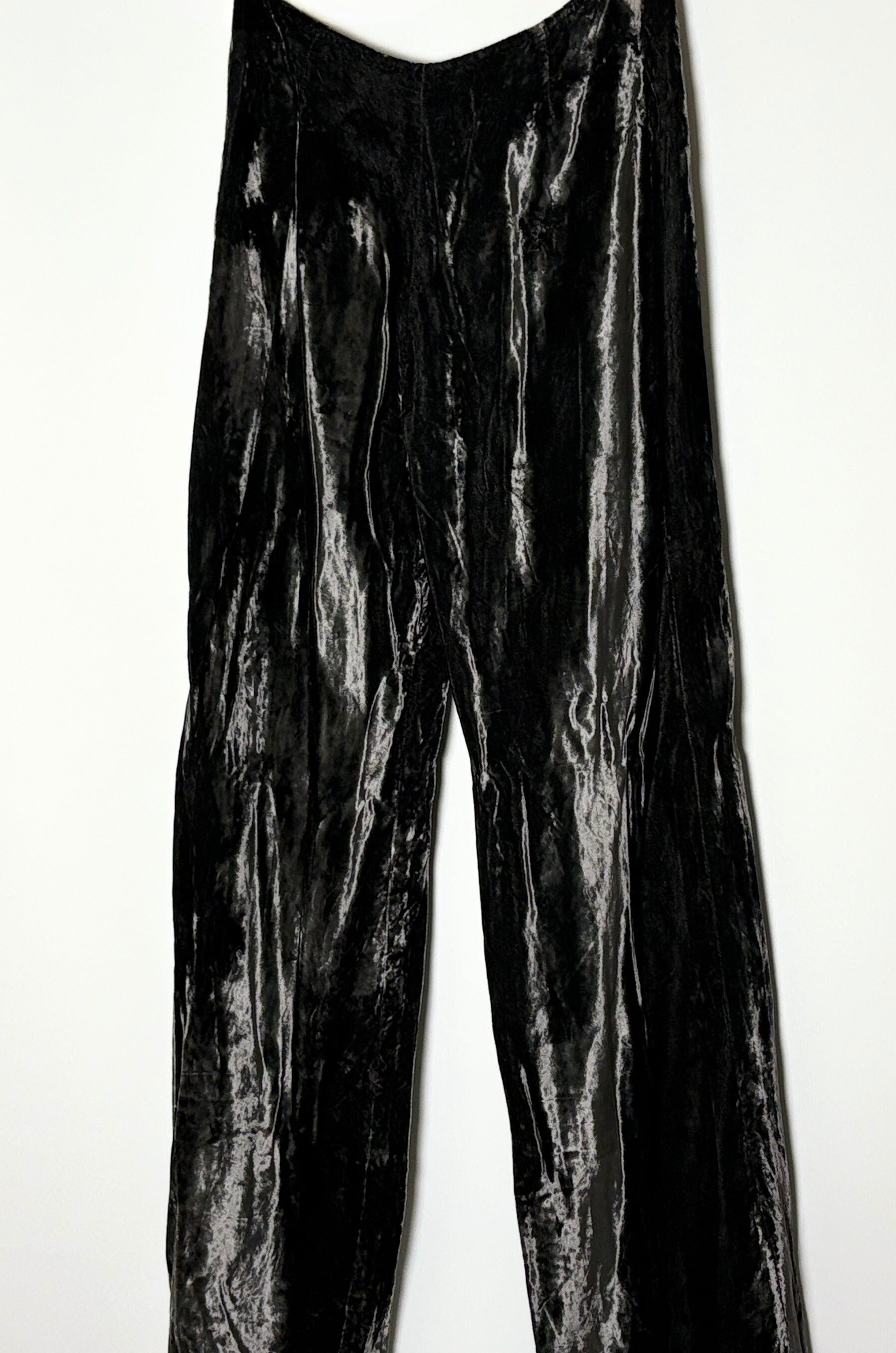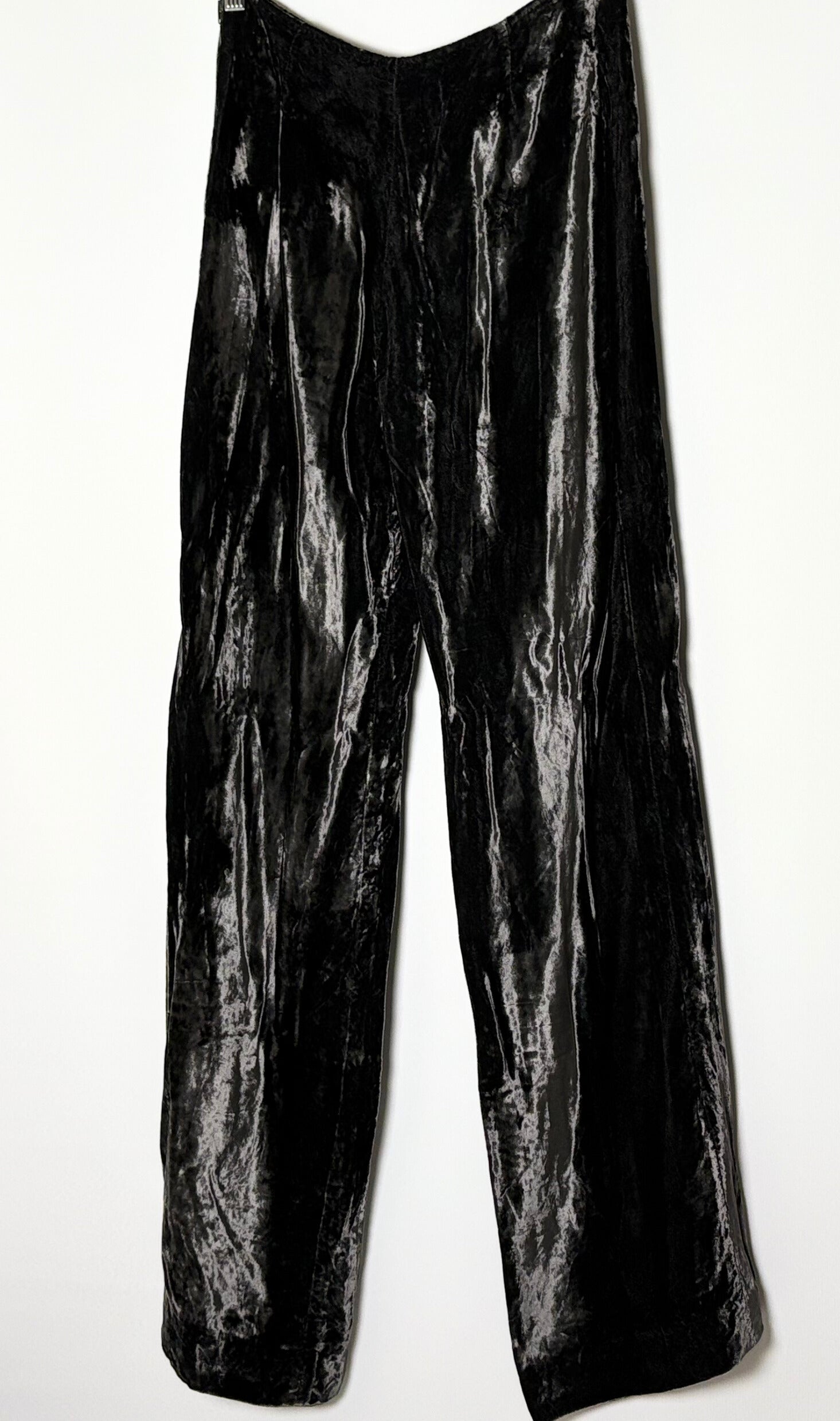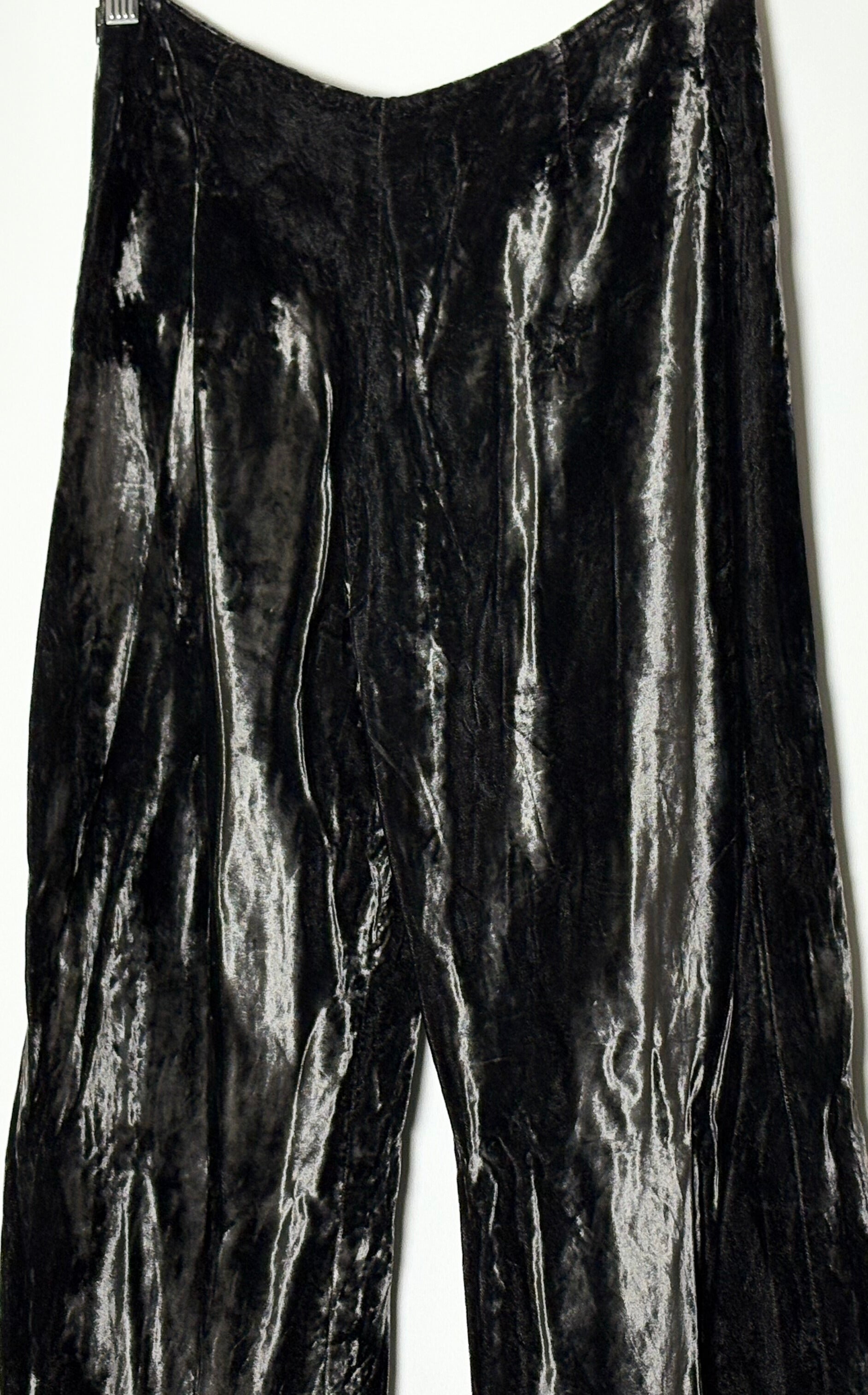 Fallegar vintage buxur úr dökkgráu flauelisefni. Buxurnar eru háar í mitt og með beint snið. Rennilás á hlið.