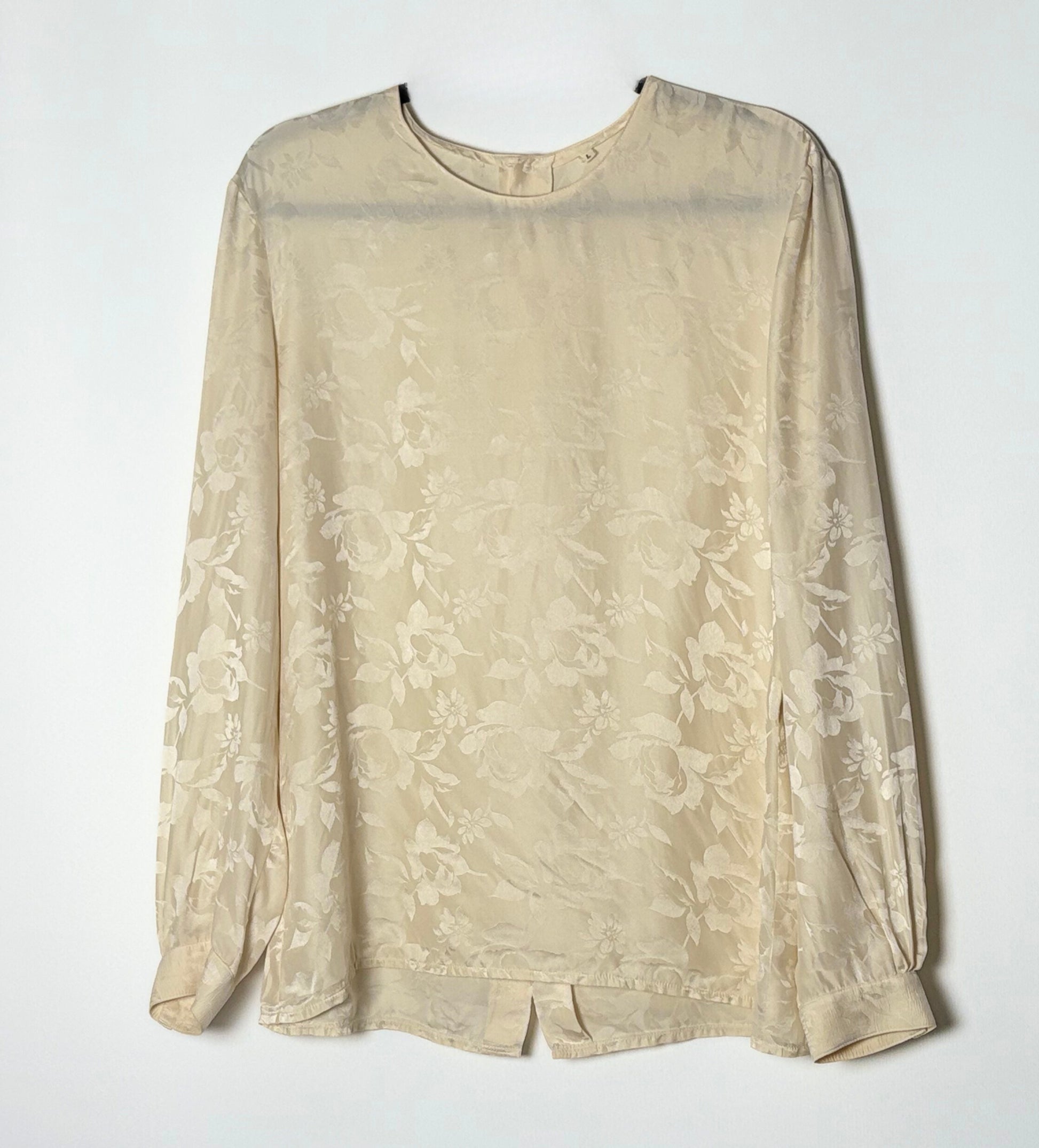 Einstaklega falleg vintage blússa með blómamunstri. Skyrtan er í hefðbundnu sniði með tölum að aftan.