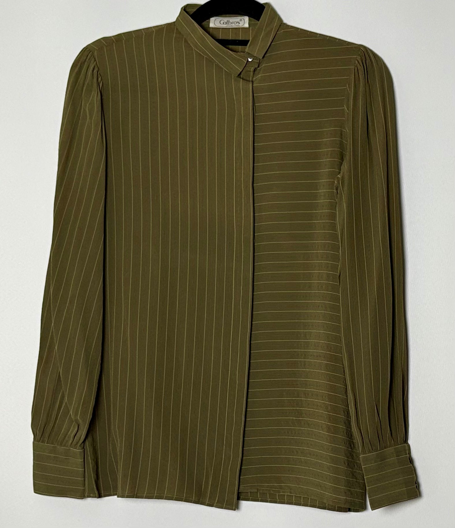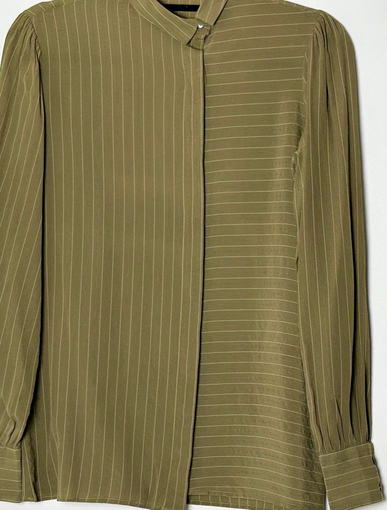 Vintage skyrta úr silkiblöndu. Skyrtan er létt og mjúk í klassísku sniði. Framleidd á Ítalíu.