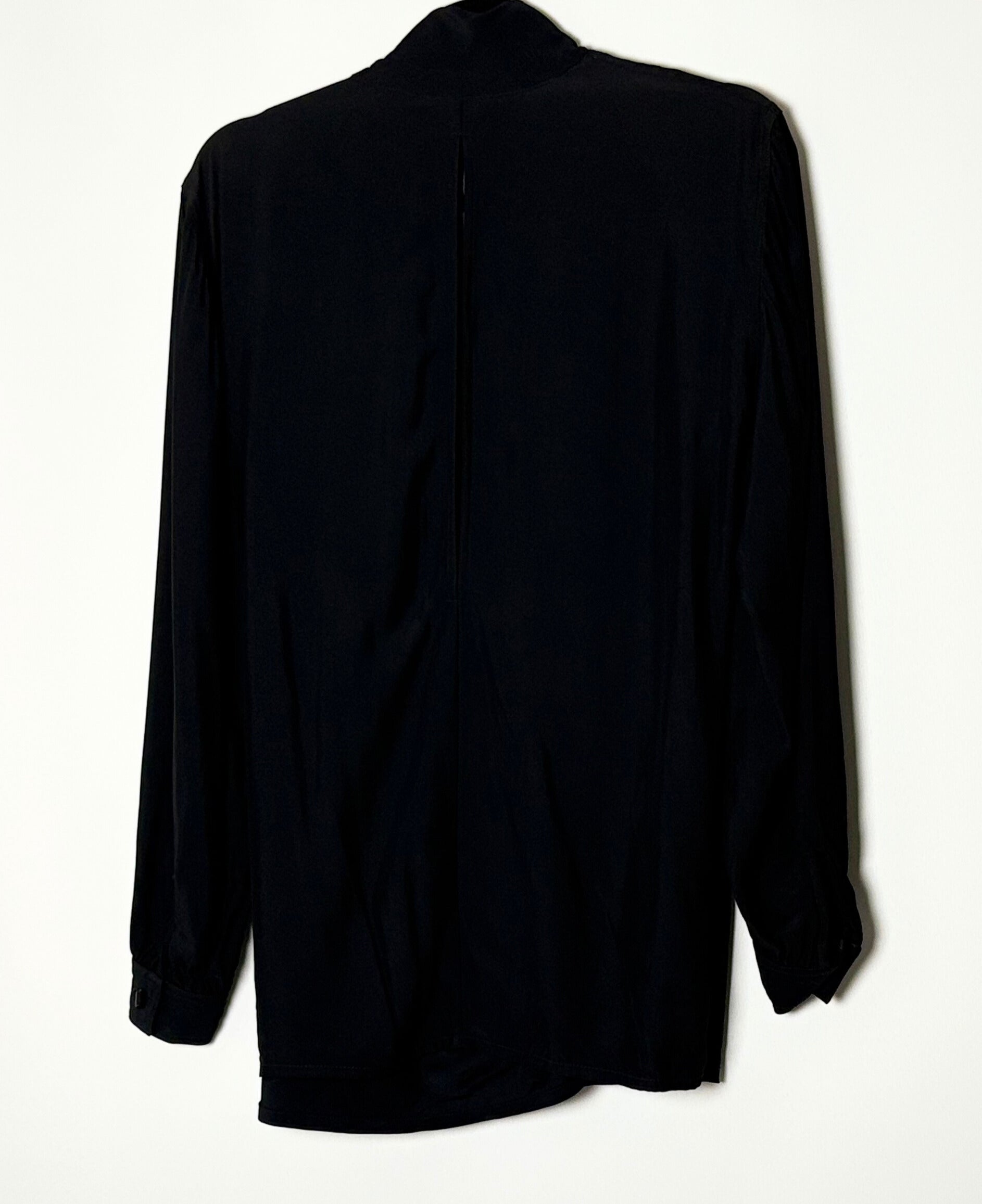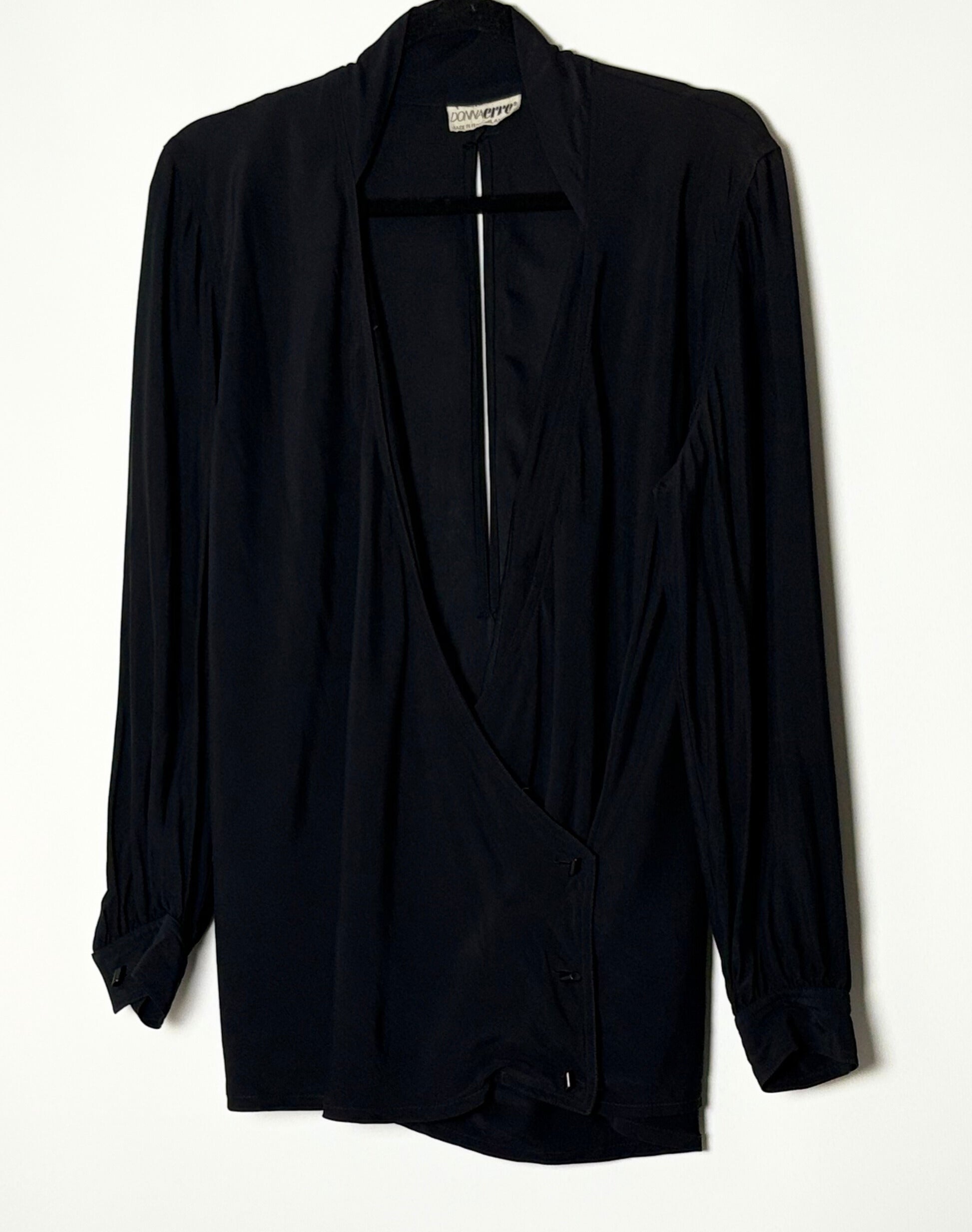 Vintage síðerma blússa með djúpu hálsmáli. Blússan er með einnig opin í bakið.