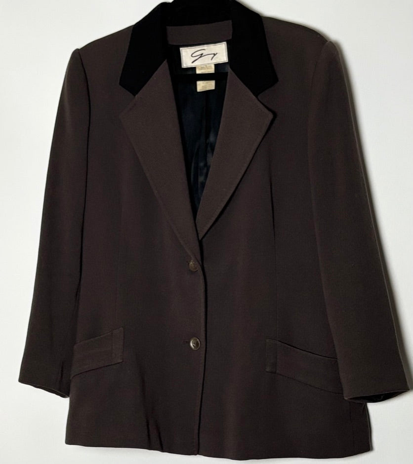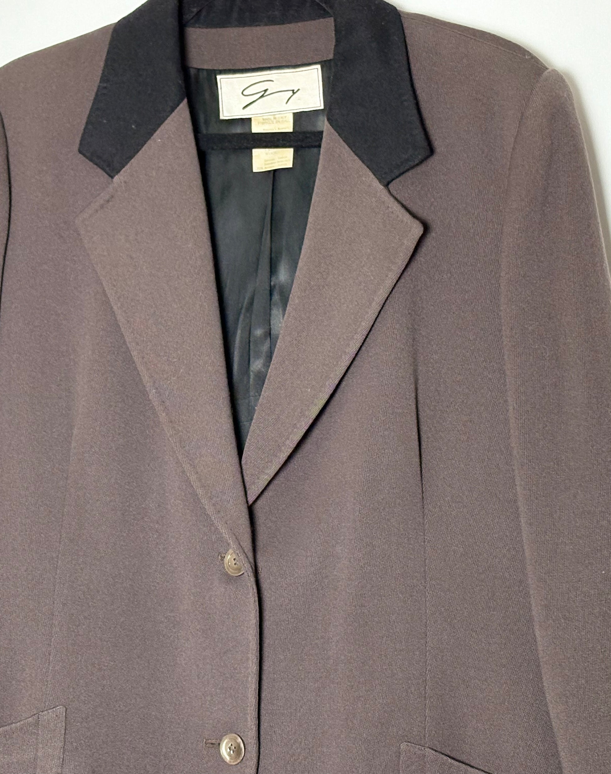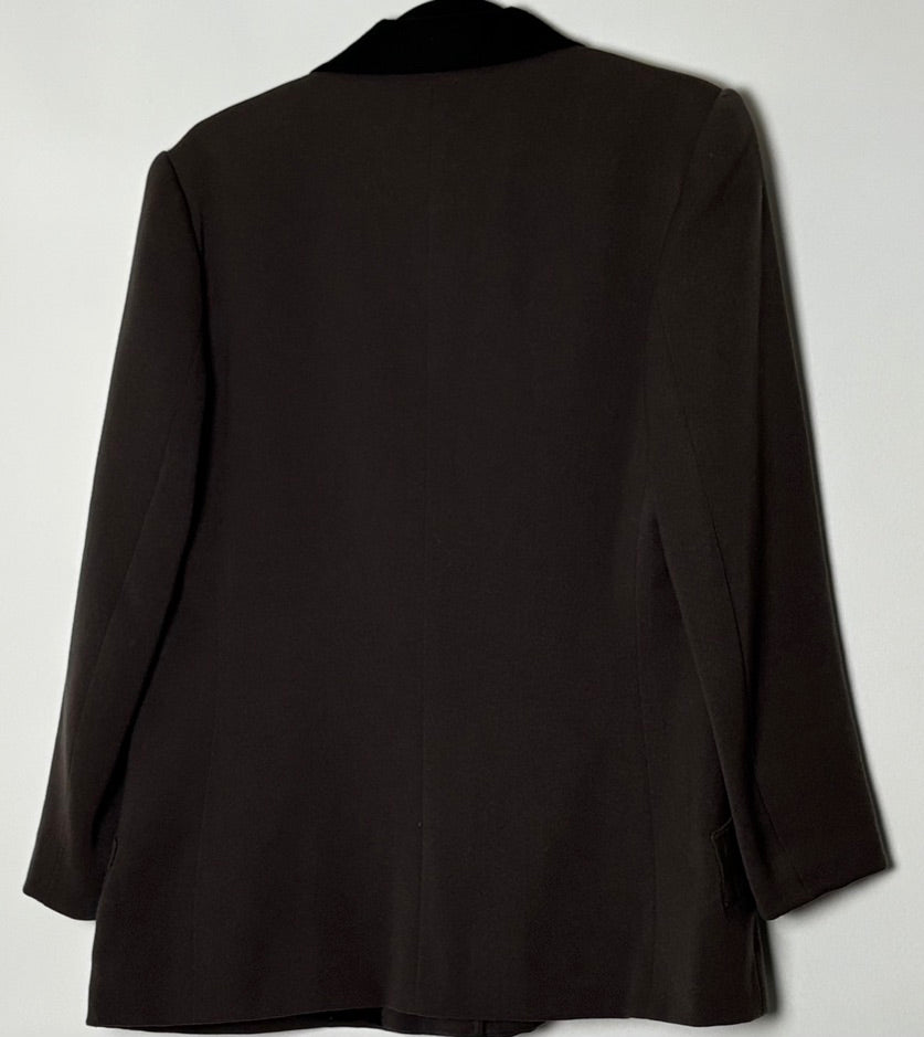 Vintage ullarjakki í fallegum dökkgrænum lit. Jakkinn hneppist að framan með tölum og er með tvo vasa. Venjulegt snið.