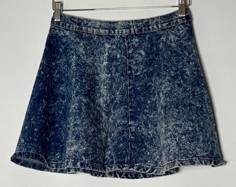 Vintage stutt gallapils. Pilsið er skater style, með háu mitti og teygist vel. Tölufesting og rennilás aftan á.
