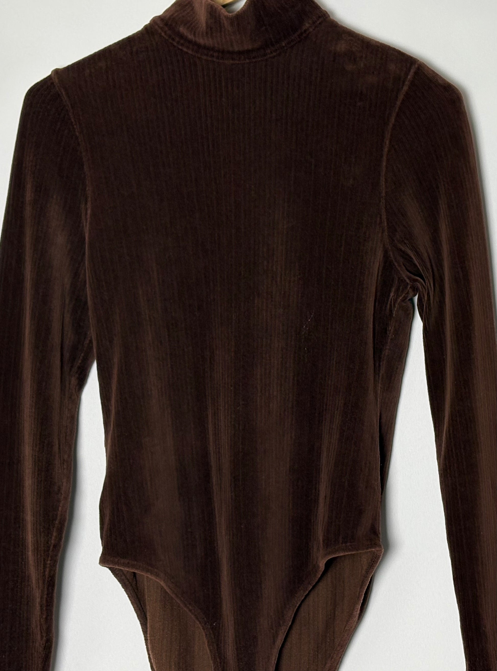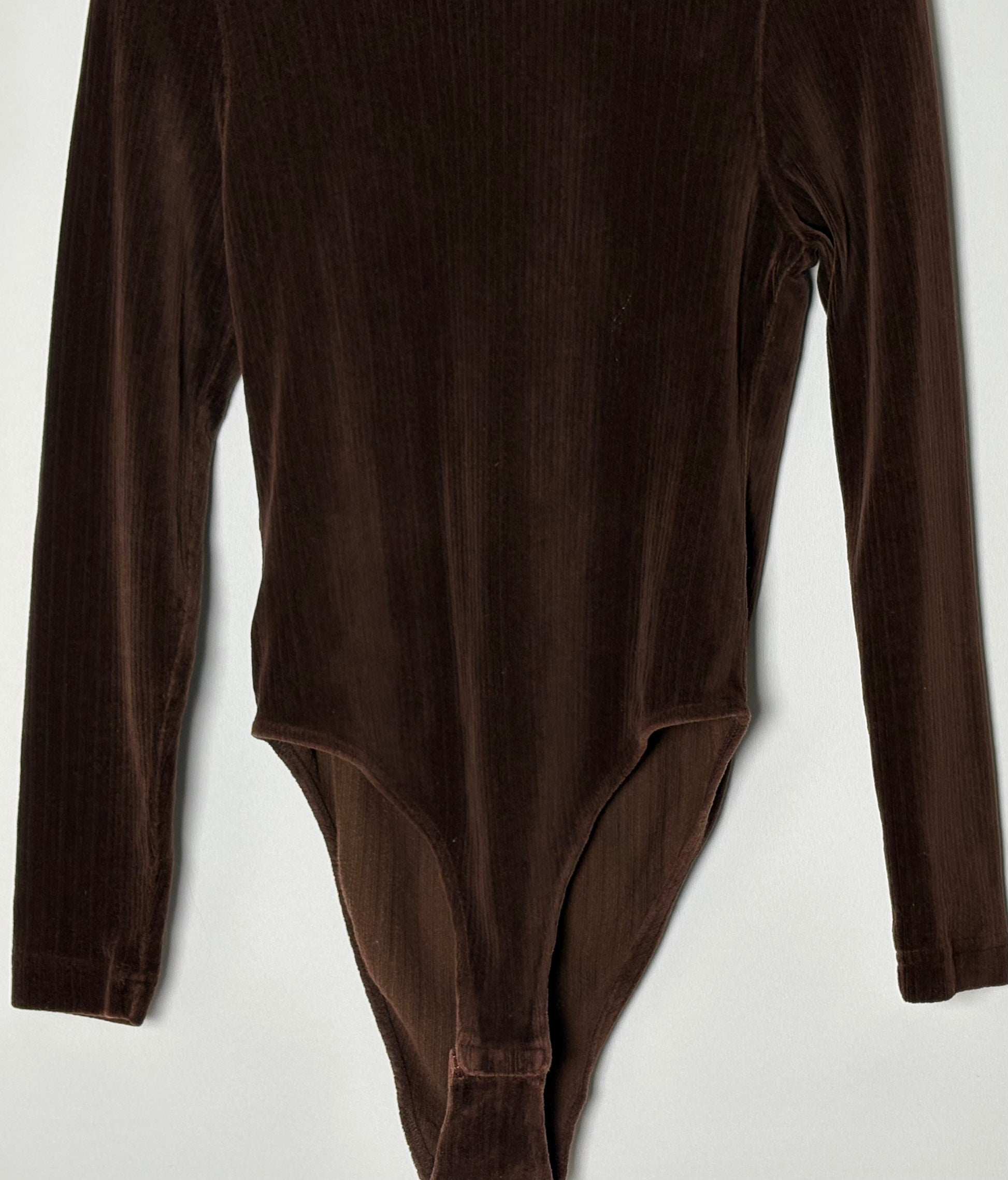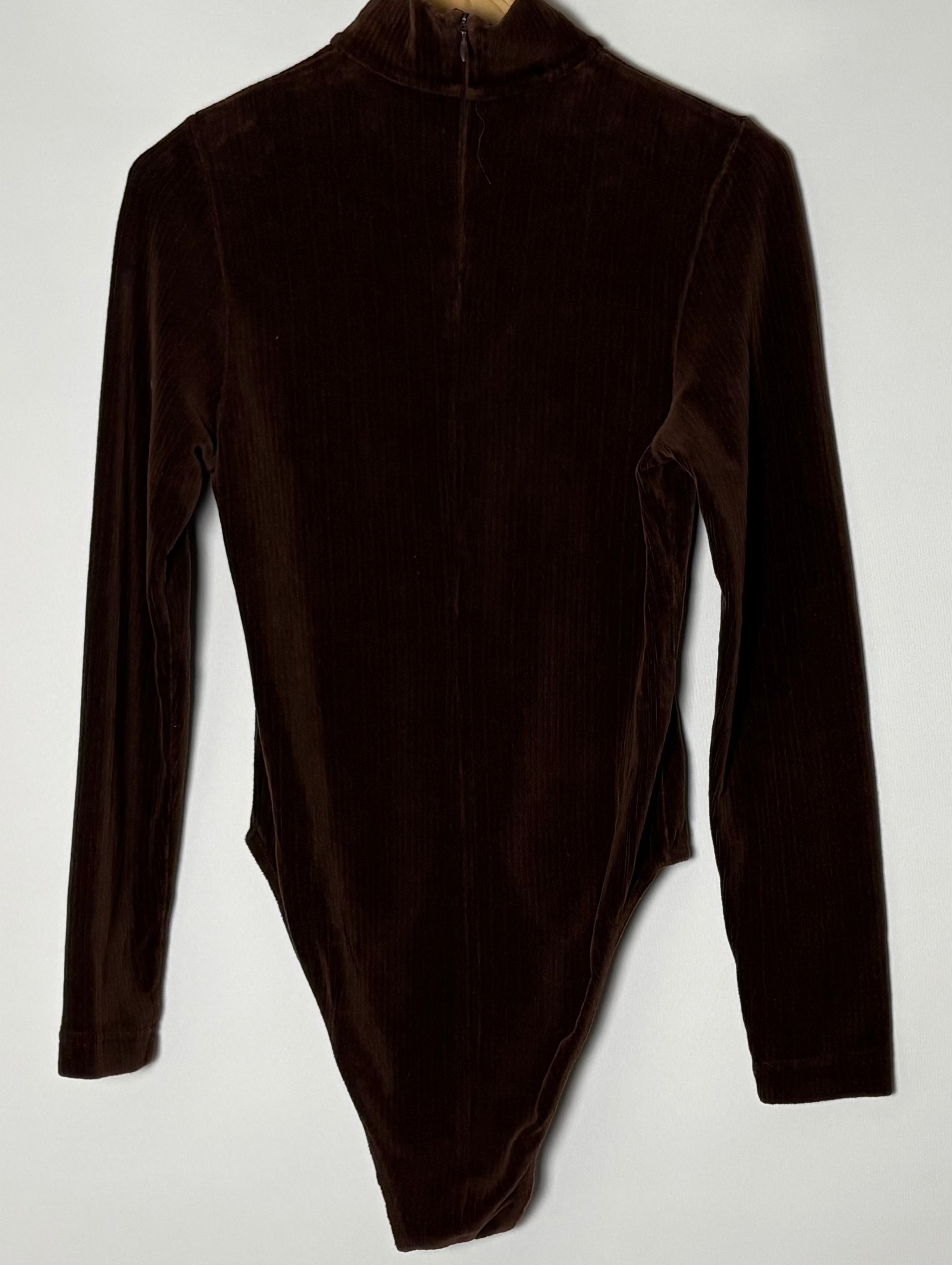 Vintage brún samfella æur þykku teygjanlegu efni. Samfellan er með wmellur í klofinu og rennilás aftan á.
